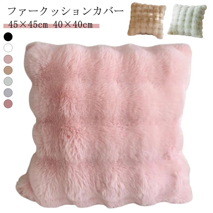 無地 軽量 ふわふわ クッションカバー あったか おしゃれ もこもこ 40×40cm 正方形 韓国 ・・・
