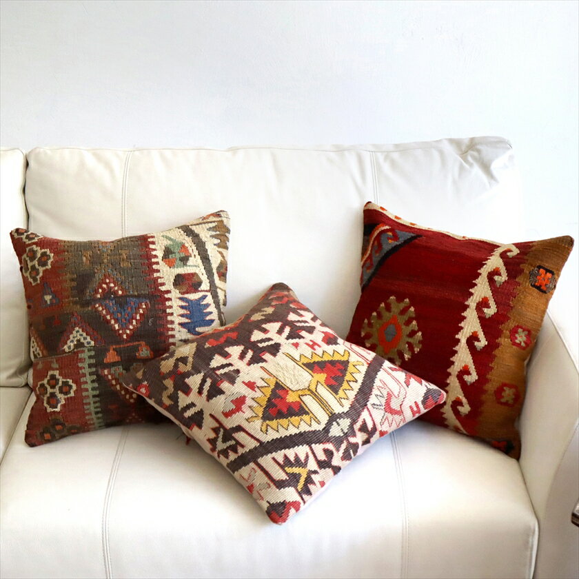 オールドキリム クッションカバー 40×40cm 3枚セット さまざまなモチーフ