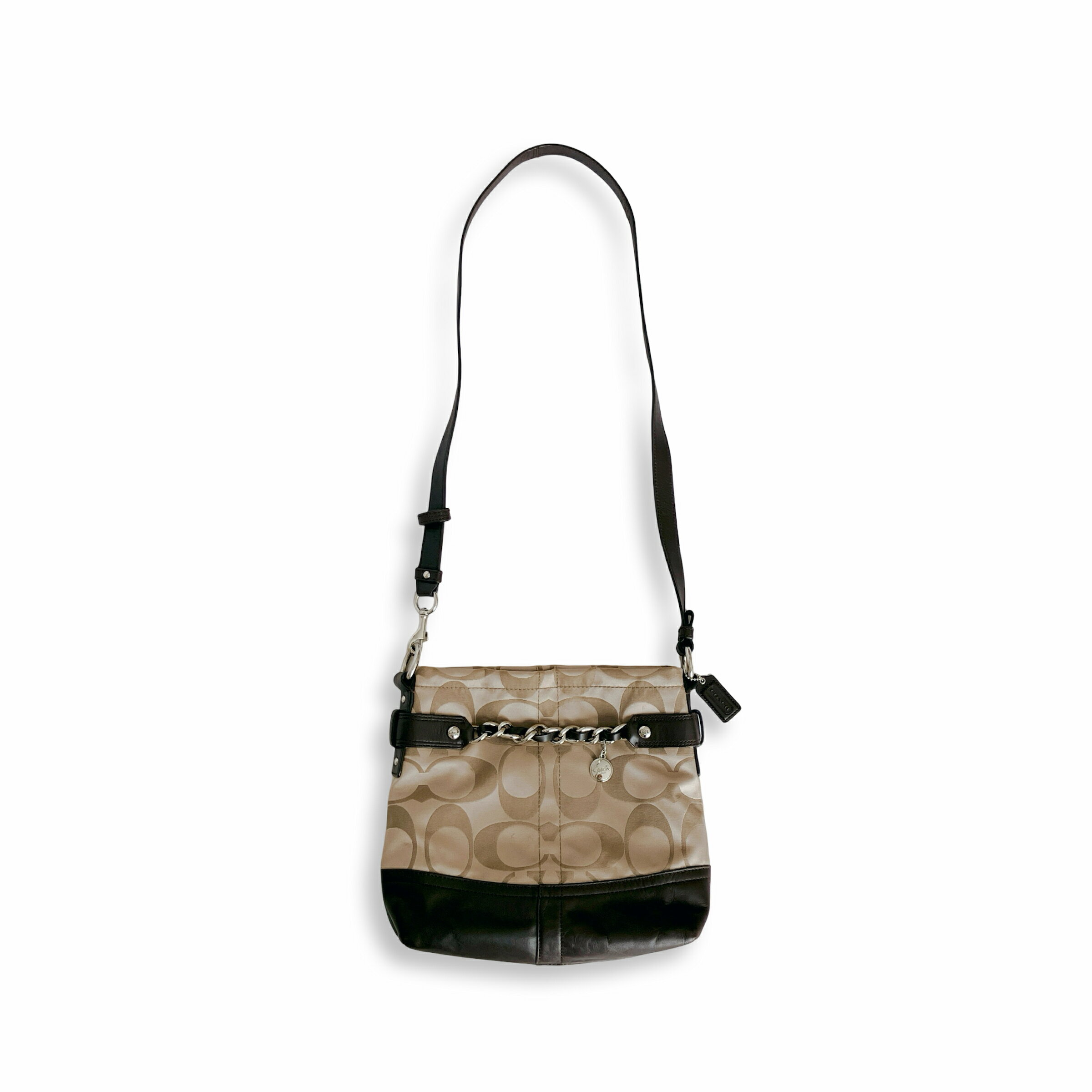 COACH コーチ シグネチャー チェーン ダッフル キャンバス レザー ショルダーバッグ ブラウン・・・