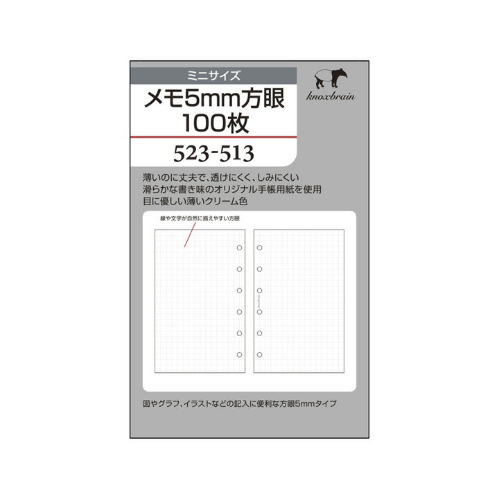 KNOX ノックス ミニ6穴 リフィル 523-513メモ5mm方眼100枚 システム手帳 スケジュ・・・
