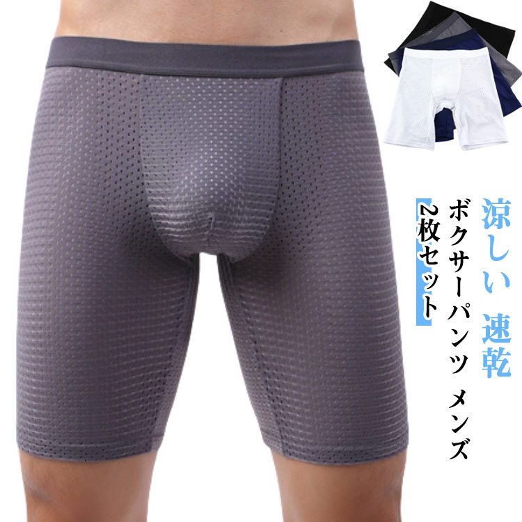 涼しい メッシュ ロングボクサーパンツ セット メンズ 下着 ボクサーパンツ インナー ロング ボク・・・