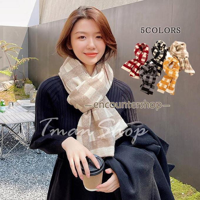 男女兼用 マフラー レディース チェック柄 ストール ふわふわ 厚手 冬 ニットマフラー ギンガムチ・・・