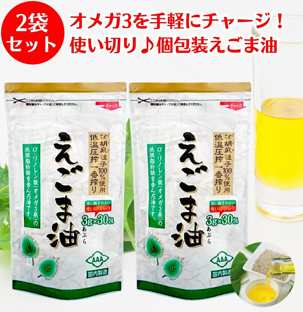朝日 えごま油 3g × 30包 2袋 セット エゴマ油 オメガ3 油 個包装 えごま えごまオイル・・・
