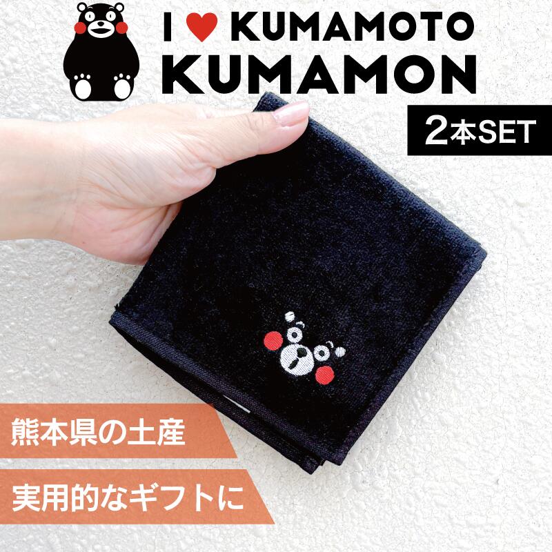 【イーグス祭開催中!】【2個】フォーカート くまモン 抗菌刺繍 ハンカチ ブラック(ご当地 お土産 ・・・
