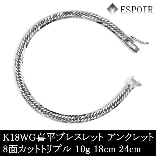 新品 18金 ホワイトゴールド 喜平 ブレスレット アンクレット K18WG 8面カットトリプル 1・・・