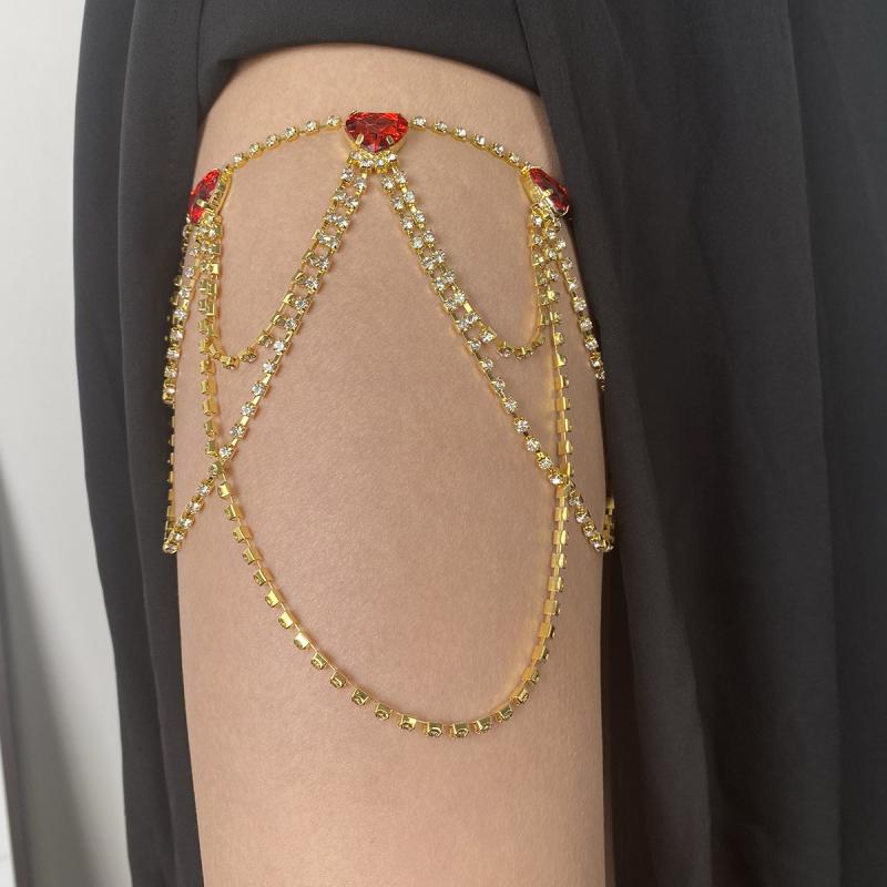 ボディチェーン レディース セクシー 多層 ルビー ハート アンクレット レッグチェーン 欧米風 海・・・