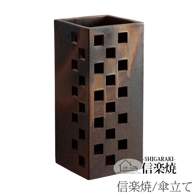 信楽焼きの傘立「スクエアーゴールド傘立」伝統 工芸品 しがらき 陶器 陶製 和風 玄関 レインラック・・・