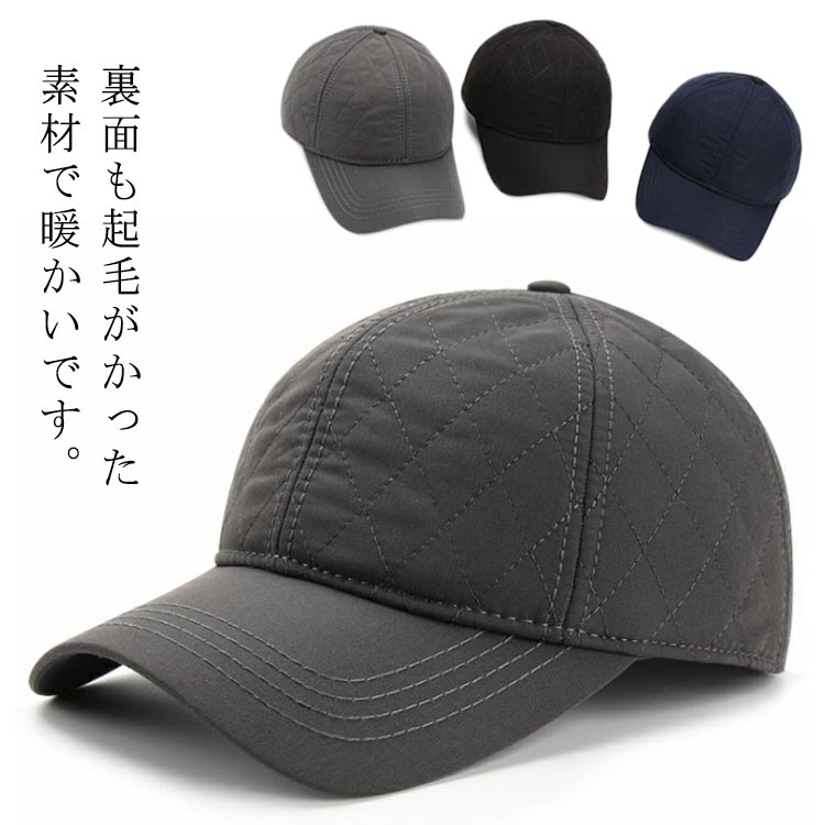 キャップ 帽子 耳当て付き キルティング あったか 防寒 メンズ レディース ネイビー (ネイビー,・・・