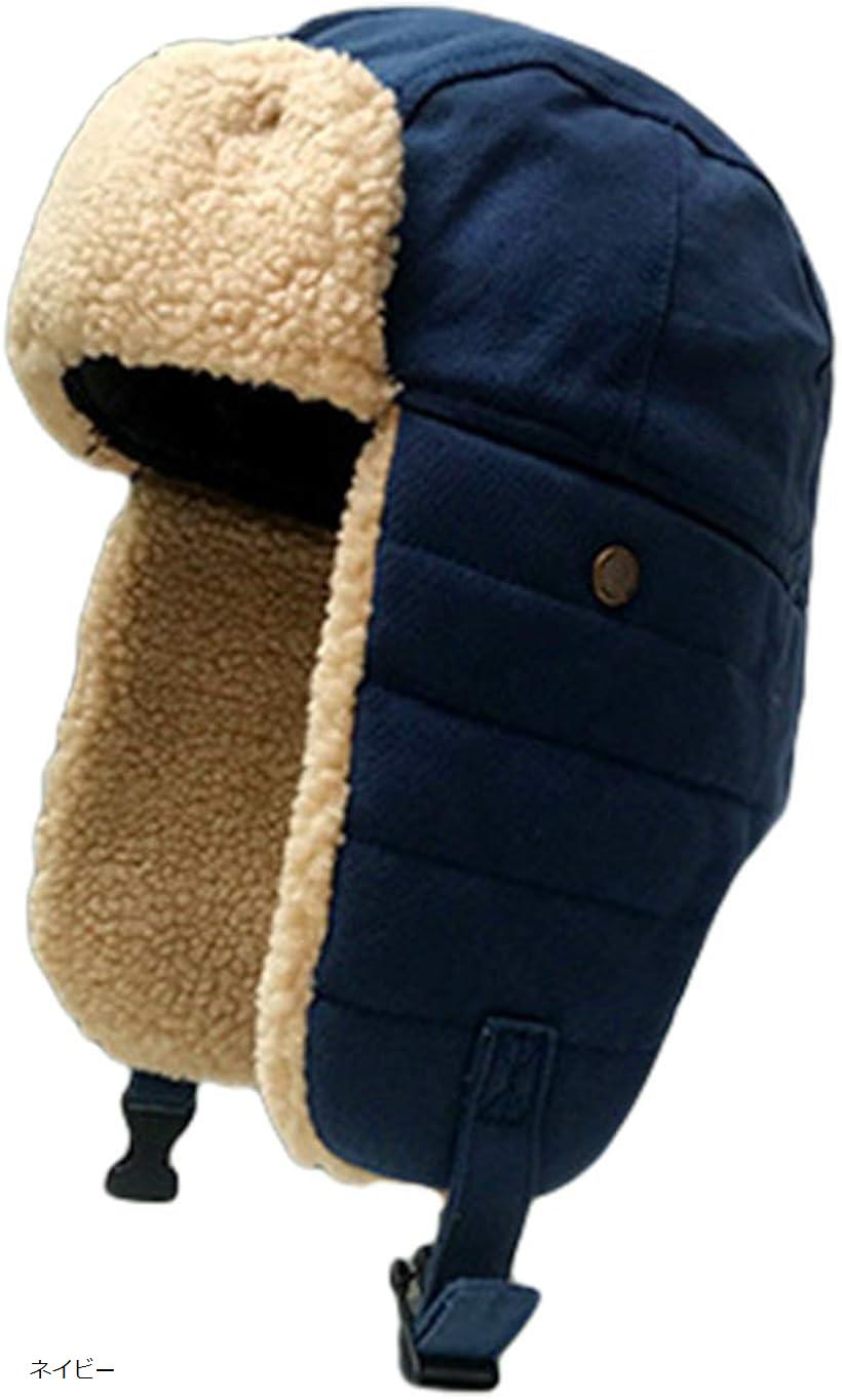 帽子 パイロットキャップ ボア帽子 防寒 あったか 耳当て付き ネイビー (ネイビー, Free S・・・