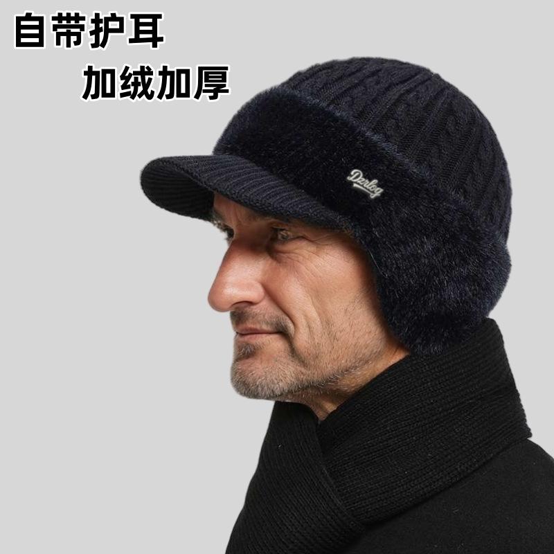 ニット帽 メンズ 秋冬 耳当て付き つば付き ポリエステル 厚手 裏起毛 保温 防風 防寒 ケーブル・・・