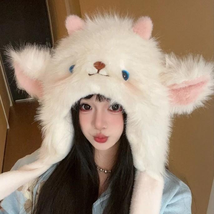 帽子 レディース かわいい 小羊 加绒 裏起毛 厚手 保温 耳あて付き アニマル ふわふわ 秋冬 防・・・