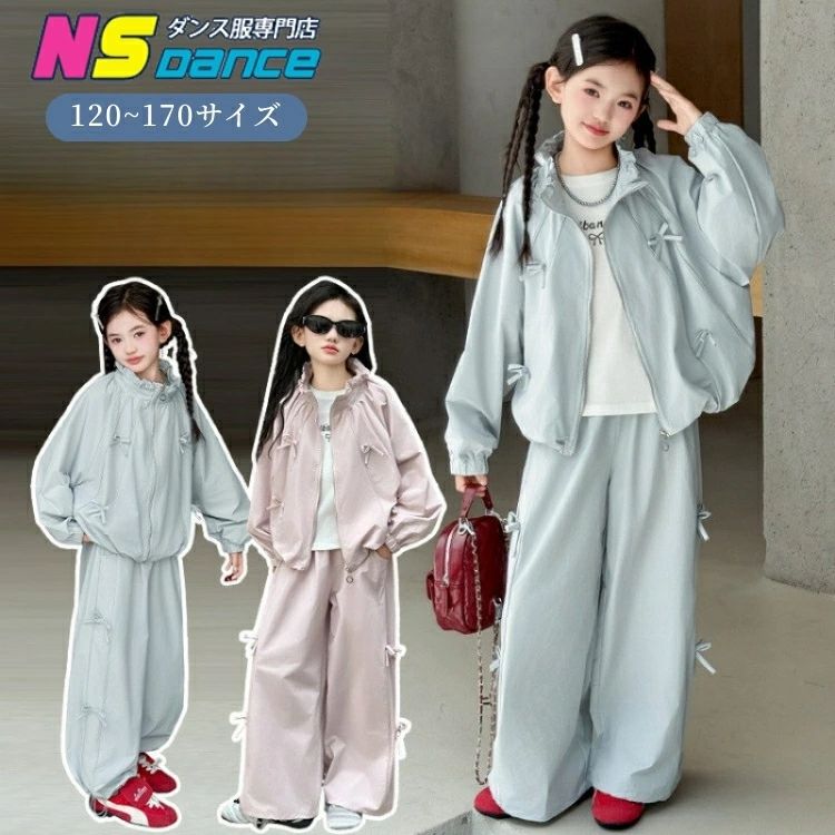 リボン 子供服 キッズ セットアップ ジャケット ウィンドブレーカー ロングパンツ ワイドパンツ ジ・・・