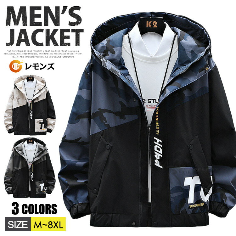 メンズ ウィンドブレーカー マウンテンパーカー 迷彩柄 フード付き ジップアップジャケット 軽量 防・・・