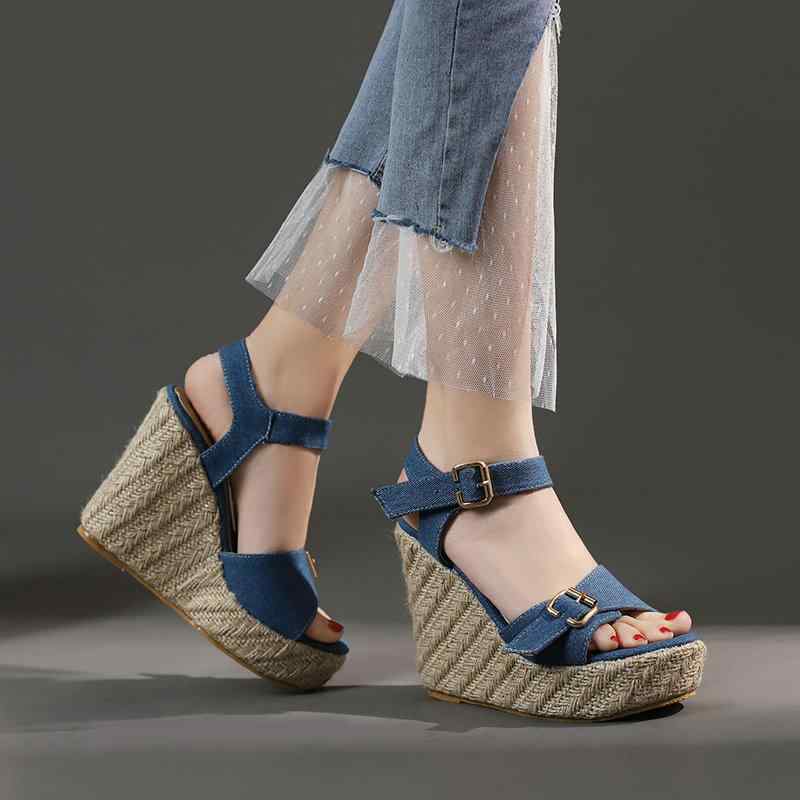 サンダル レディース ウェッジソール ハイヒール デニム オープントゥ エスパドリーユ アンクルスト・・・