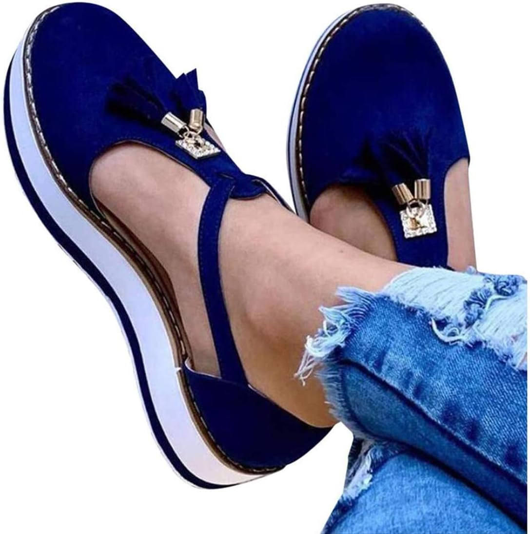 女性用厚底靴とウェッジサンダルフラットシューズ快適なファッションタッセルサンダルクローズドトゥフラッ・・・