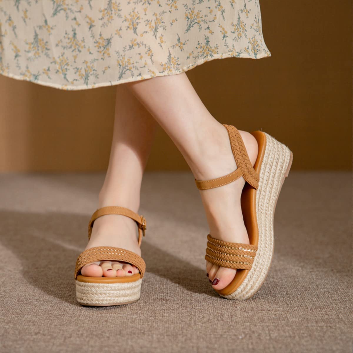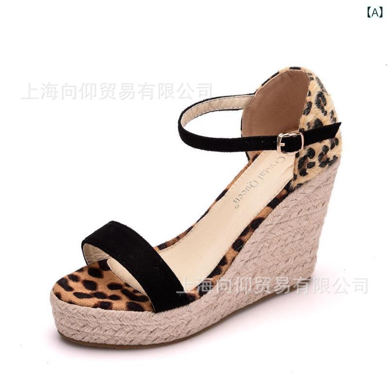サマーシューズレディースヘンプハイヒールプラットフォームアウトドアレジャーバックルスリッパビーチサン・・・