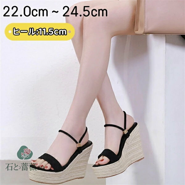 サンダル レディース 婦人靴 草編み 坡底 厚底 エスパドリーユ 羊革 スエード調 アンクルストラッ・・・