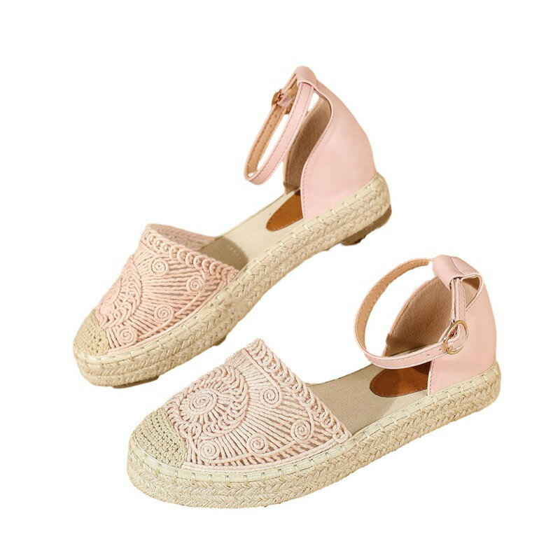 レディースサマーオープントゥプラットフォームエスパドリーユスエードバックルアンクルストラップカジュア・・・