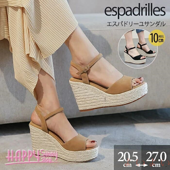 【送料無料】厚底サンダル レディース エスパドリーユ ウェッジソール スエード調 10cmヒール ア・・・