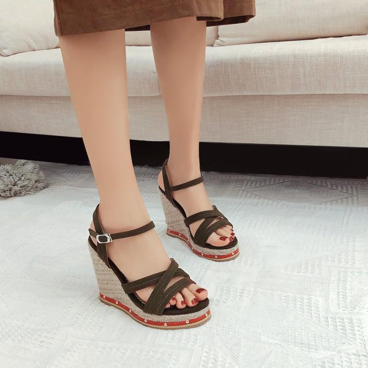 サンダル レディース 女性用 大きいサイズ ビッグサイズ 欧米風 スエード調 草編み エスパドリーユ・・・