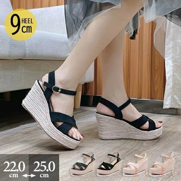 【送料無料】厚底 サンダル レディース エスパドリーユ ウェッジソール 9cmヒール アンクルストラ・・・
