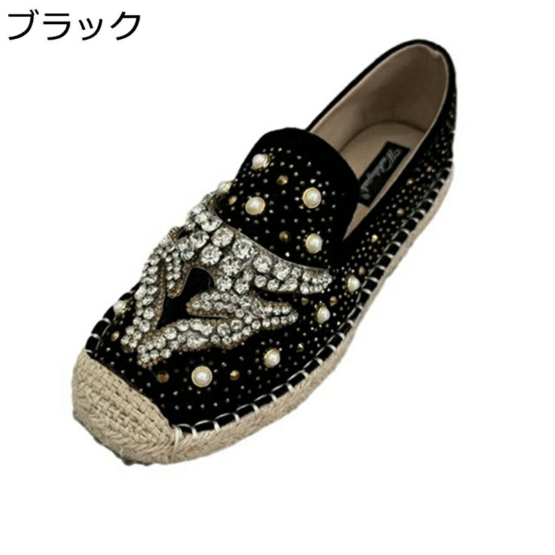 レディース スリッポン 23.0-26.5cm 春夏 エスパドリーユ スパンコール ペタンコ靴 キャ・・・