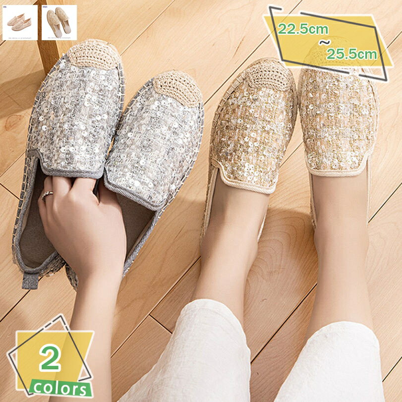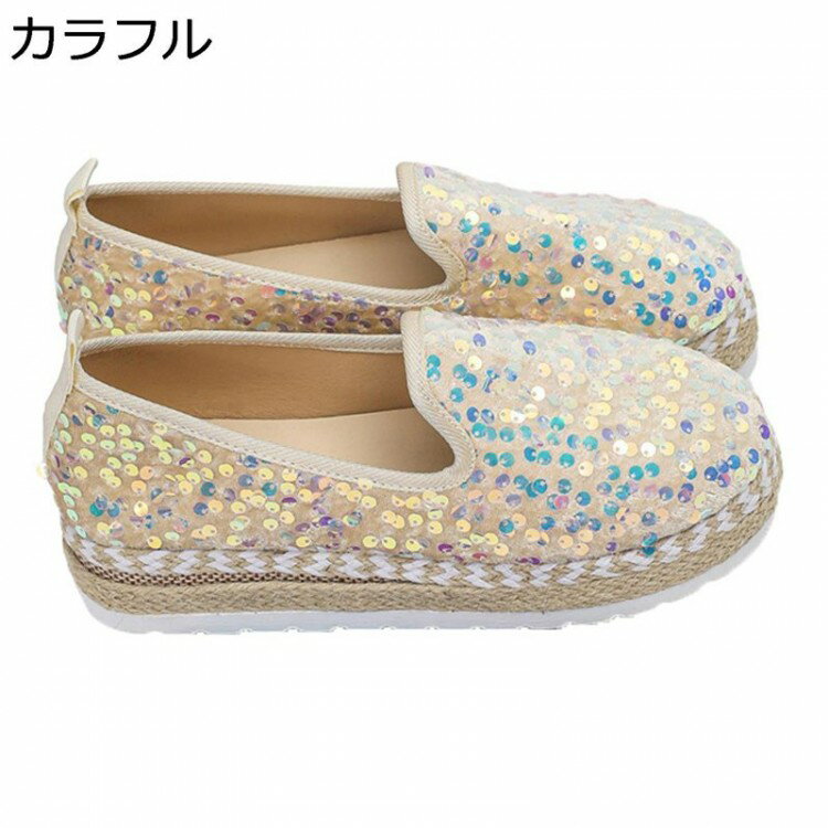 エスパドリーユ レディース 23-26.5CM 厚底スリッポン スパンコール 春夏秋着 グリッター ・・・