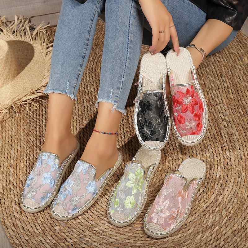 エスパドリーユ レディース メッシュ スリッポン フラットシューズ グリッター 厚底 大きいサイズ対・・・