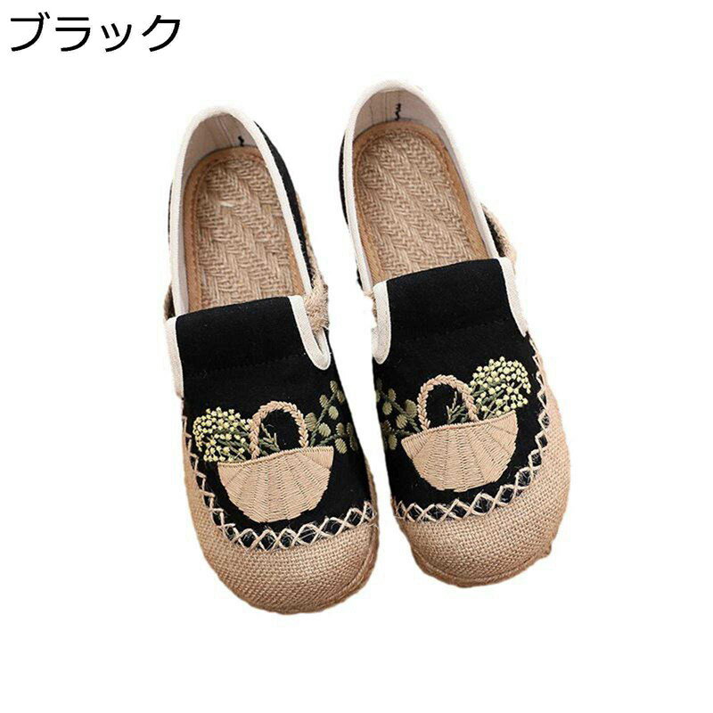 フラットシューズ レディース エスパドリーユ ジュート底 メッシュ 刺繍 花柄 スリッポン フラット・・・
