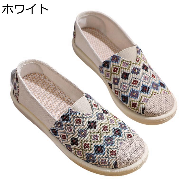 スリッポン スニーカー レディース ドライビングシューズ 亜麻 エスパドリーユ 春 夏 エスニック ・・・