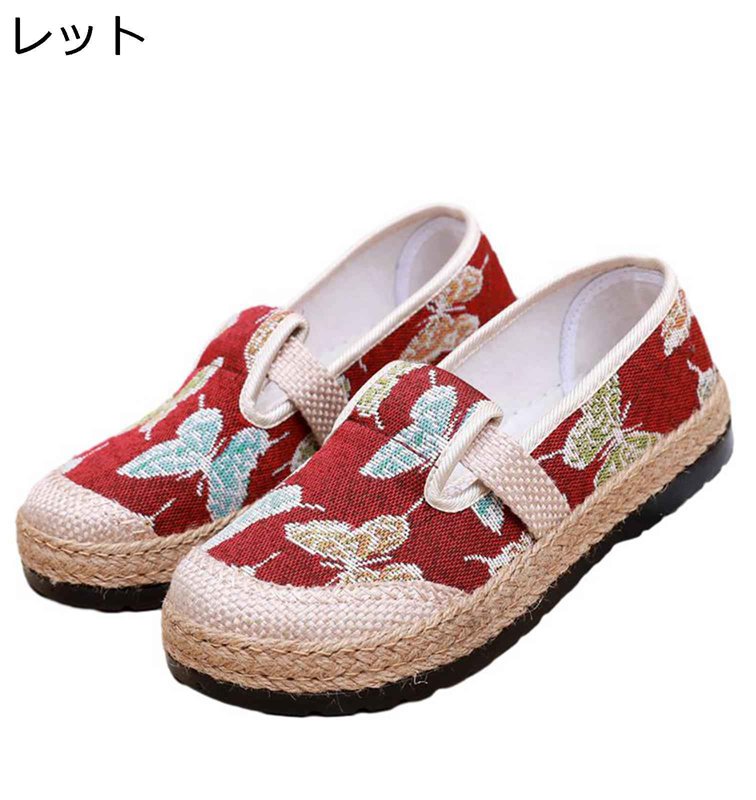 キャンバスシューズ ローファー レディース ジュート底 スリッポン フラット 蝶柄 ローカット 滑り・・・