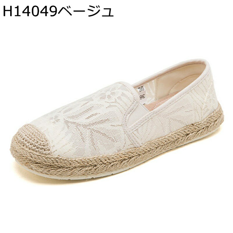 エスパシューズ スニーカー レディース メッシュ 花柄 スリッポン ジュート底 フラット 綿麻 厚底・・・