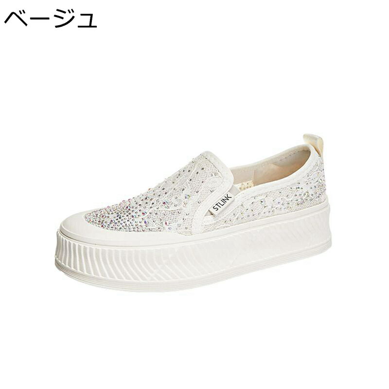 モカシン ドライビングシューズ レディース 4.5cm デッキシューズ レース スパンコール カジュ・・・