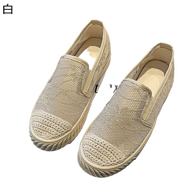 ローファー レディース 刺繍 花柄 カジュアル スニーカー 厚底 デッキシューズ すりっぽん 紐なし・・・