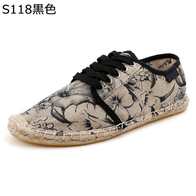 エスパドリーユシューズ メンズ レースアップ 花柄 フラット ジュート底 スニーカー キャンパスシュ・・・