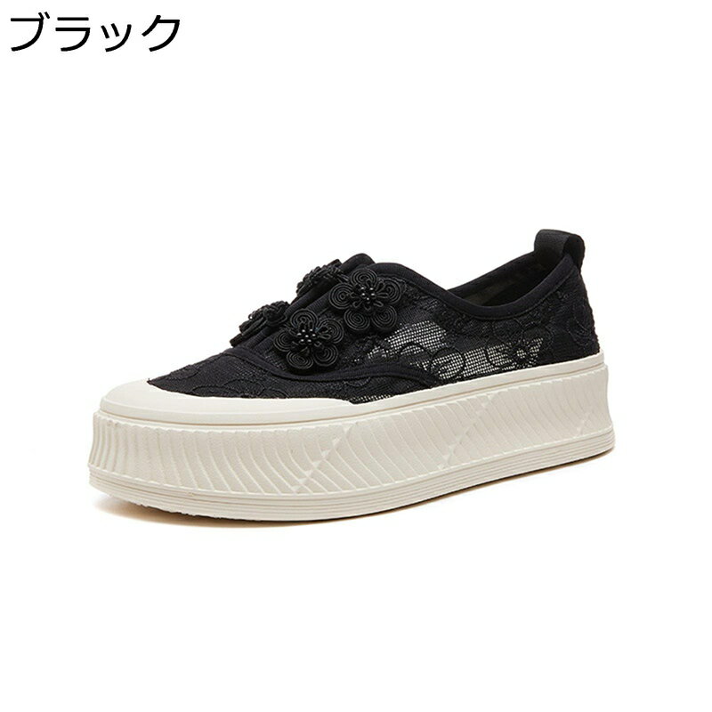 厚底スニーカー レディース カジュアル 花 刺繍 フラットパンプス 可愛い 透け感 スリッポン デッ・・・