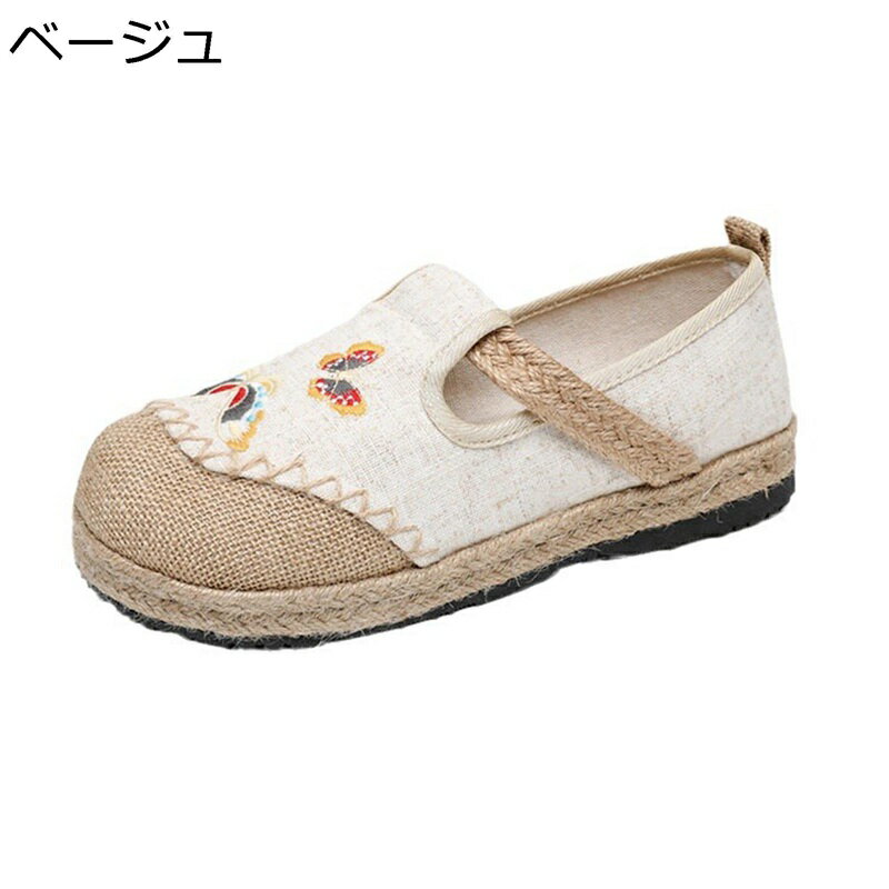 エスパシューズ レディース 蝶柄 サンダル スニーカー 厚底 亜麻 エスパドリーユ 紐なし ジュート・・・