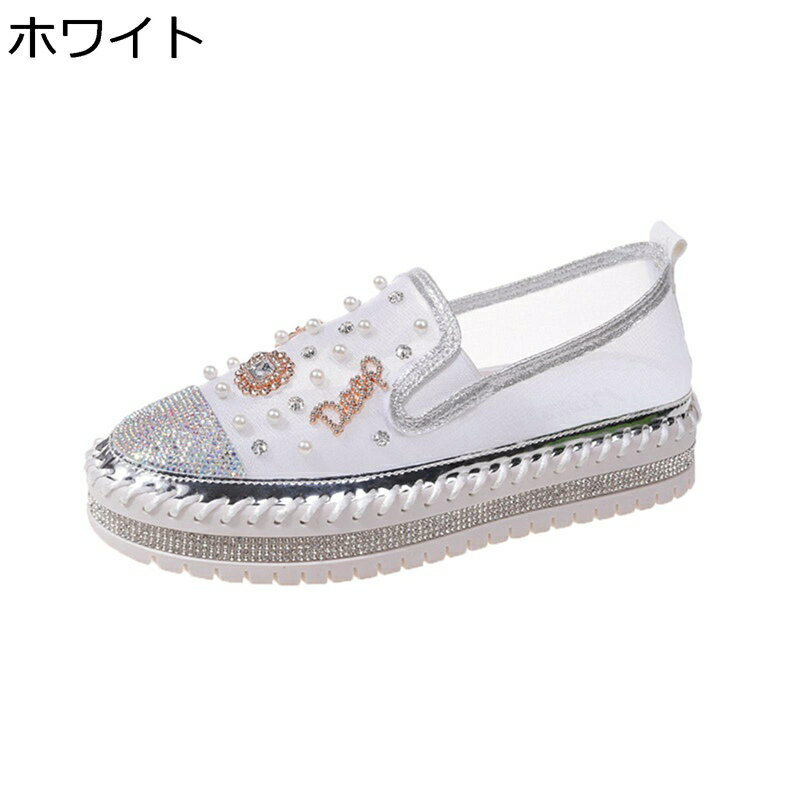 エスパドリーユ レディース 厚底スニーカー 春夏秋着 ラウンドトゥ パール スパンコール キラキラ ・・・