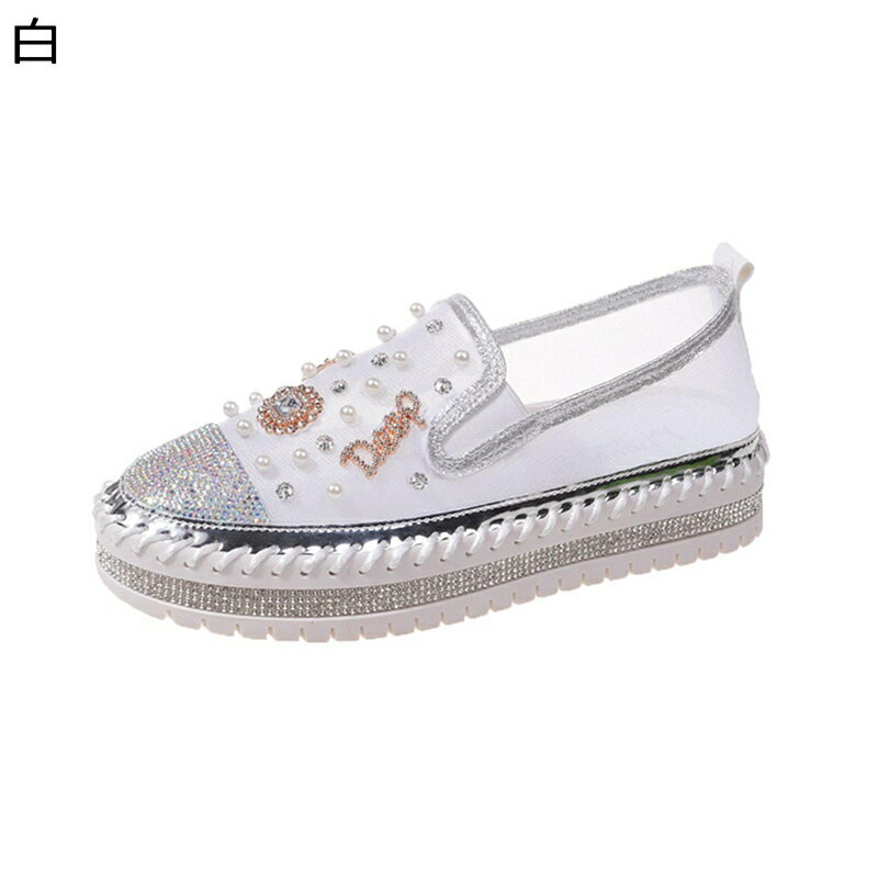 レディース エスパドリーユ ウォーキングシューズ 春夏靴 パール スパンコール キラキラ ローヒール・・・