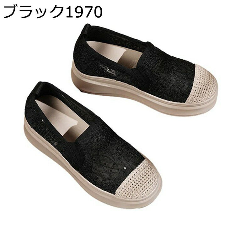 身長アップ 透け感 軽量 5cmヒール スニーカー エスパドリーユ レース プラットフォーム スポー・・・