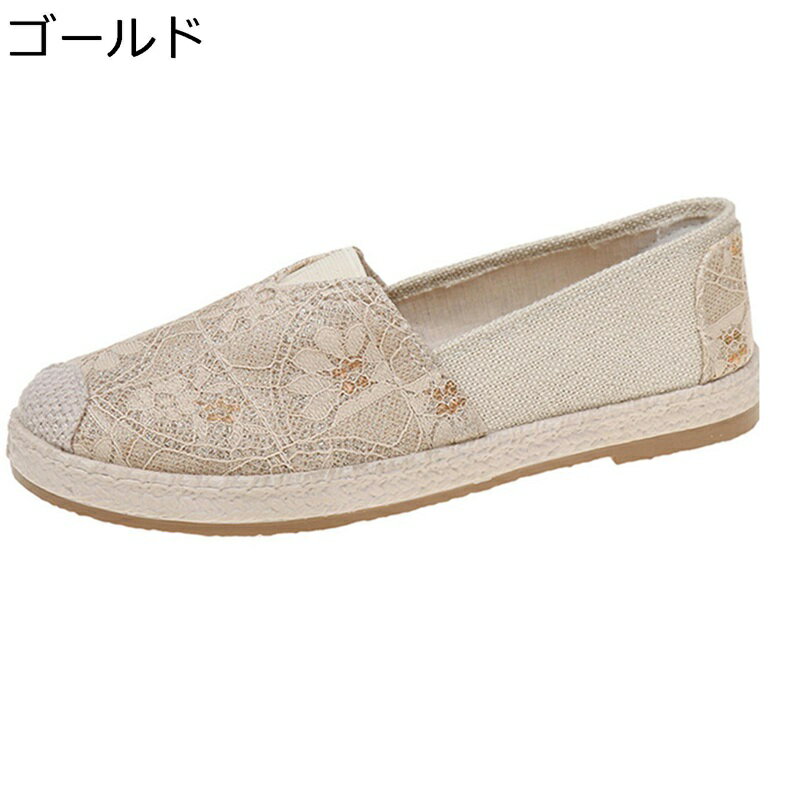 レディース ジュート卷き スリッポン 春夏 レース花柄 エスパドリーユ ペタンコ靴 ヒール2.5cm・・・