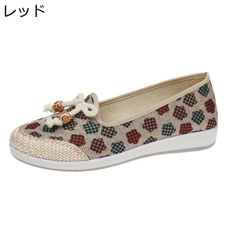 靴 レディース 民族風 刺繍 スリッポン フラット ローヒール 布製 麻 リネン素材 エスパドリーユ・・・