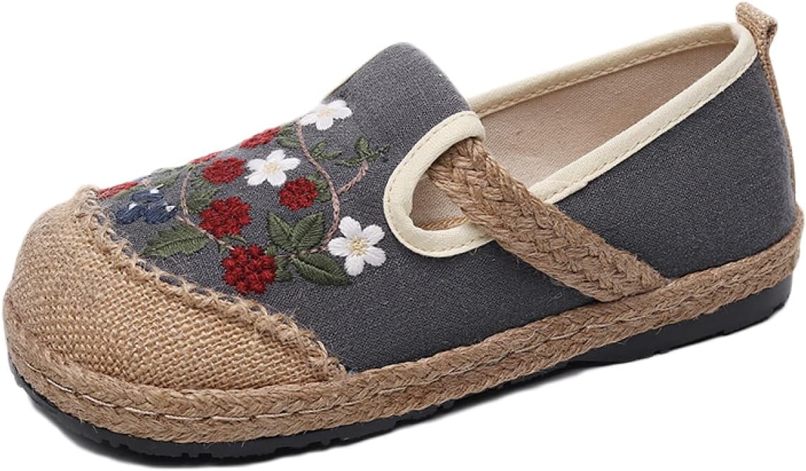 ローヒール チャイナシューズ レースアップ レディース ヘンプ 麻 エスパドリーユ 刺繍付き ラウン・・・