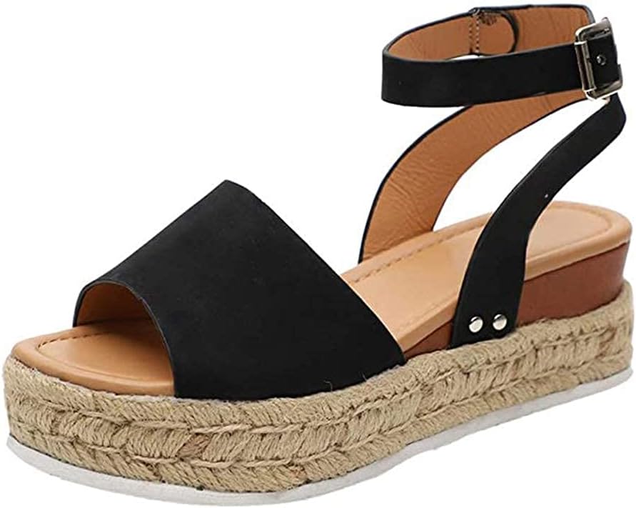 ウェッジサンダルレディースレディースプラットフォームサマーバックピープトウヴィンテージシューズアンク・・・