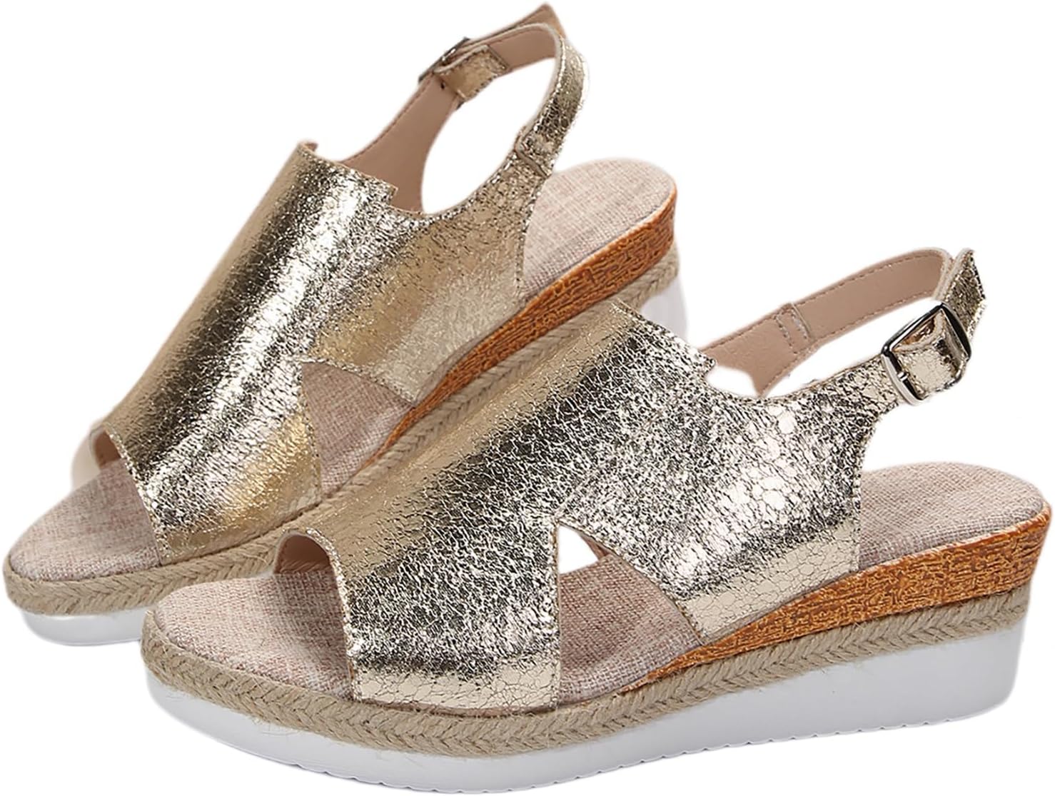 ウェッジサンダルレディースレディースプラットフォームサマーバックピープトウヴィンテージシューズアンク・・・