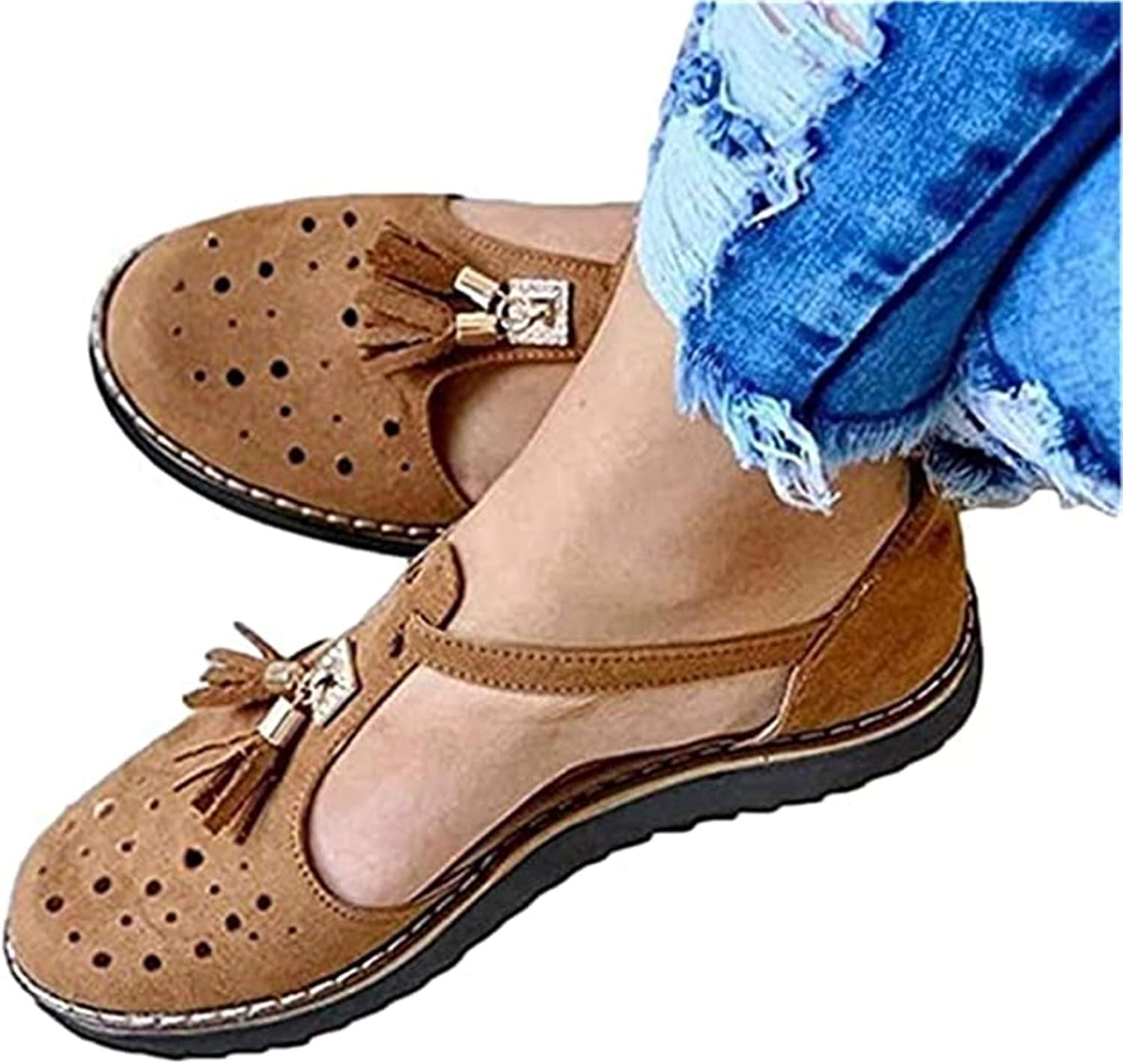 女性用厚底靴とウェッジサンダルフラットシューズ快適なファッションタッセルサンダルクローズドトゥフラッ・・・