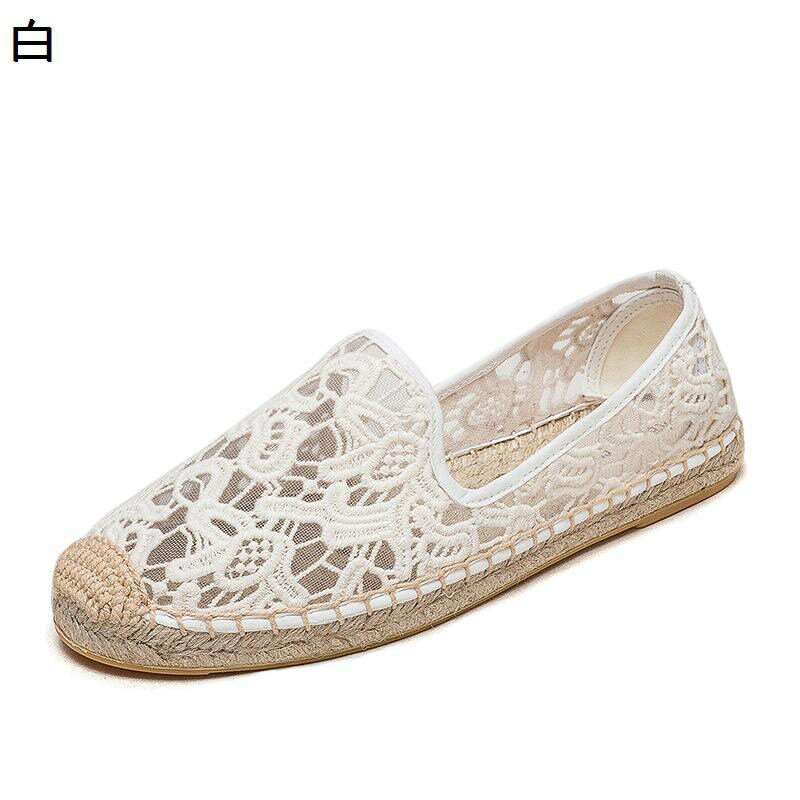 エスパドリーユ メッシュ スリッポンシューズ レディース ジュート底 花柄 レース フラットシューズ・・・