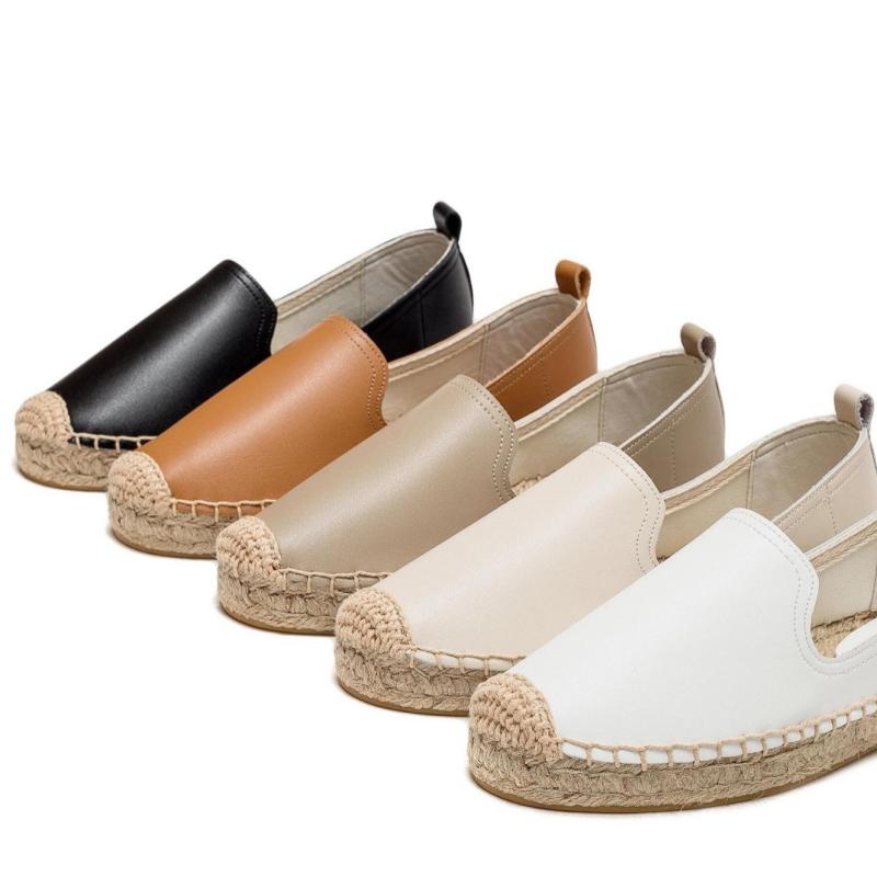 エスパドリーユ レディース 厚底フラットシューズ ストロー素材 スリッポン 本革 牛革 ラウンドトゥ・・・