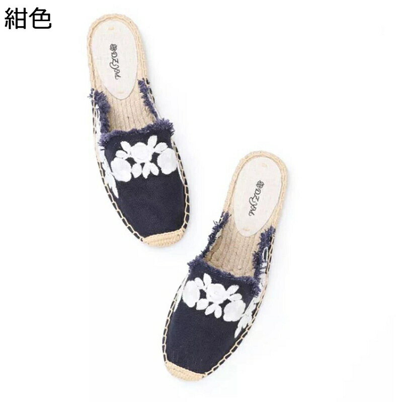 ミュール レディース 花柄 スリッパ エスパドリーユ フラットシューズ カジュアルシューズ ジュート・・・