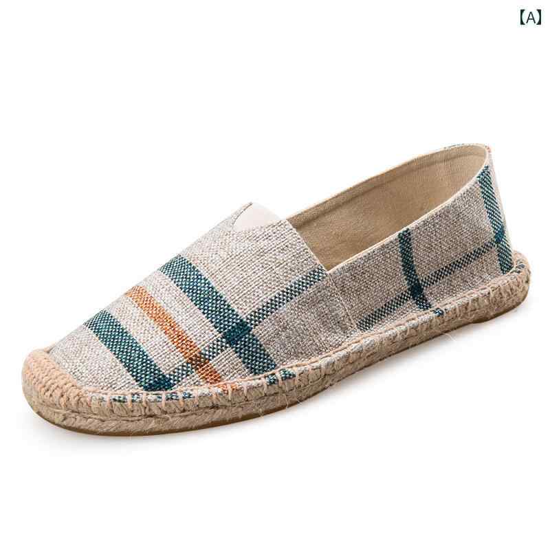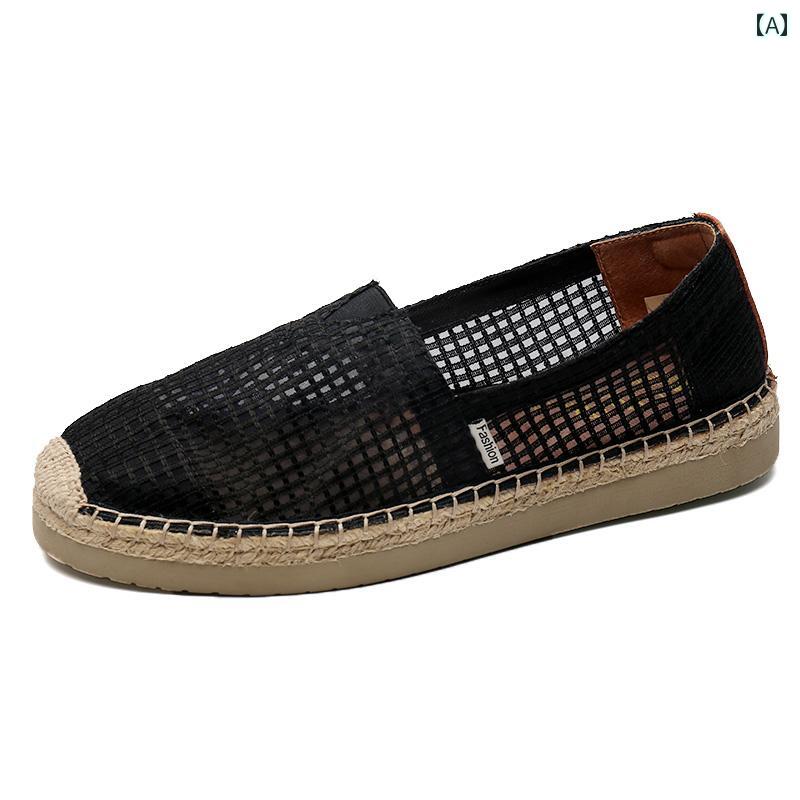 ドライビングシューズ メッシュ エスパドリーユ メンズ 亜麻 無地 スリッポン 夏用 ジュートソール・・・